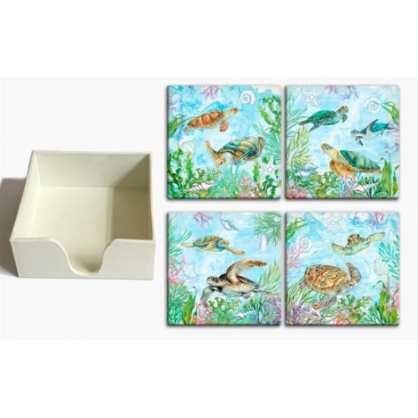 Ceramic Turtle Coaster In Box - 11.2cm x 11.2cm x 4.2cm