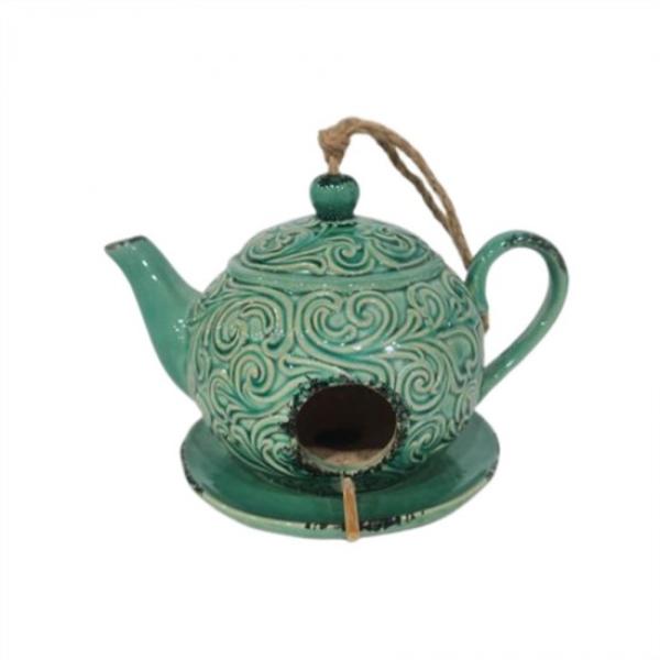 Porcelain Teapot Bird Feeder - 22cm x 17cm x 15.5cm