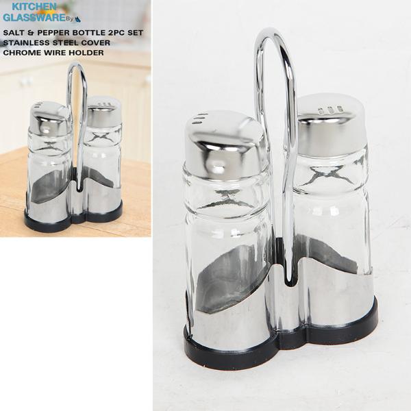 Only 4 left!Chrome Wire Salt & Pepper Glass Bottler - 3.3cm x 9cm