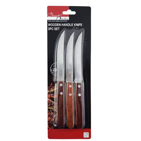 10 in stock3 Pack Wooden Handle Knife - 21.5cm
