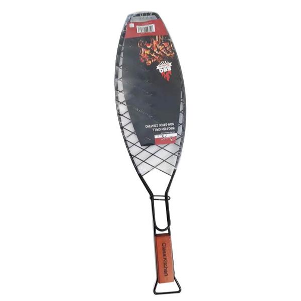 Only 1 left!Wooden Handle BBQ Fish Grill - 14cm x 58cm