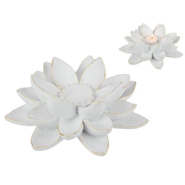 7 in stockWhite & Gold Flower Tealight Holder - 18cm