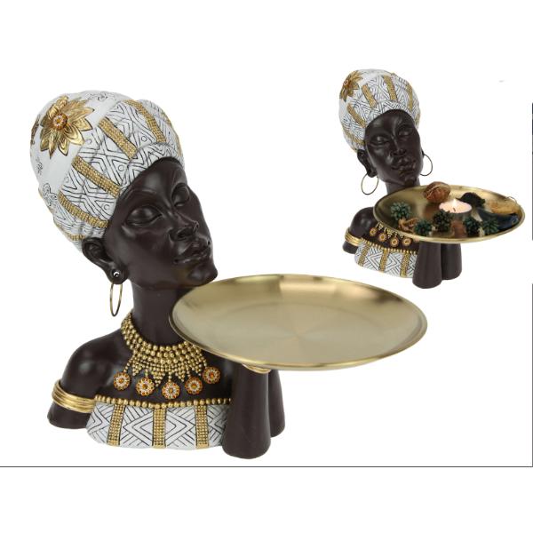 African Lady Bust With Gold Tray - 26cm