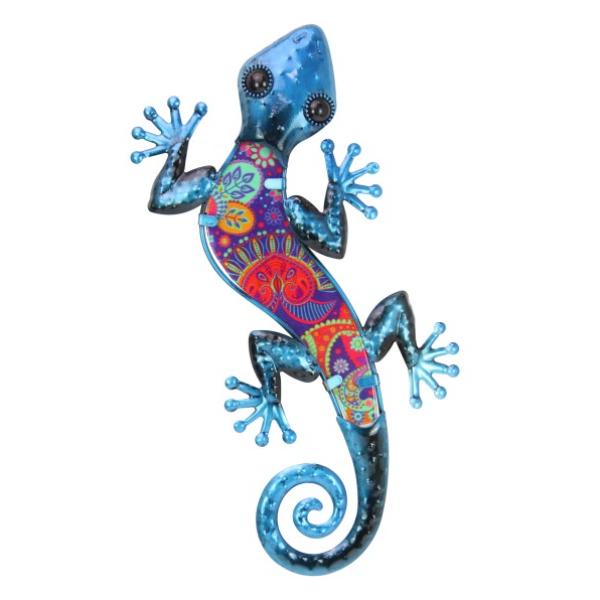 Blue Lizard Wall Art With Colourful Glass - 37cm