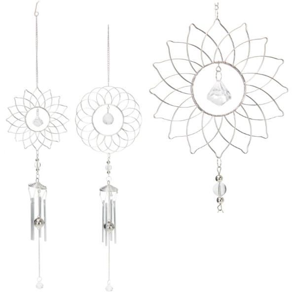 Silver Round Flower Wind Chime - 85cm