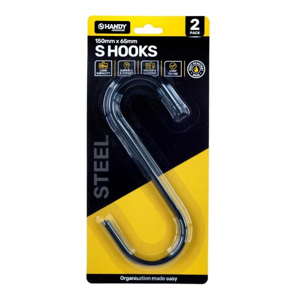 2 Pack Black Steel S Hook - 15cm x 6.5cm