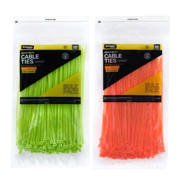 200 Pack Assorted Fluro Bulk Cable Ties - 20cm x 0.36cm
