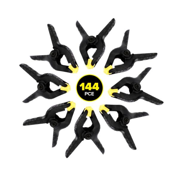 144 Pack Strong Grip Swivelling Jaws Handy Hardware Plastic Spring Clamps 9cm