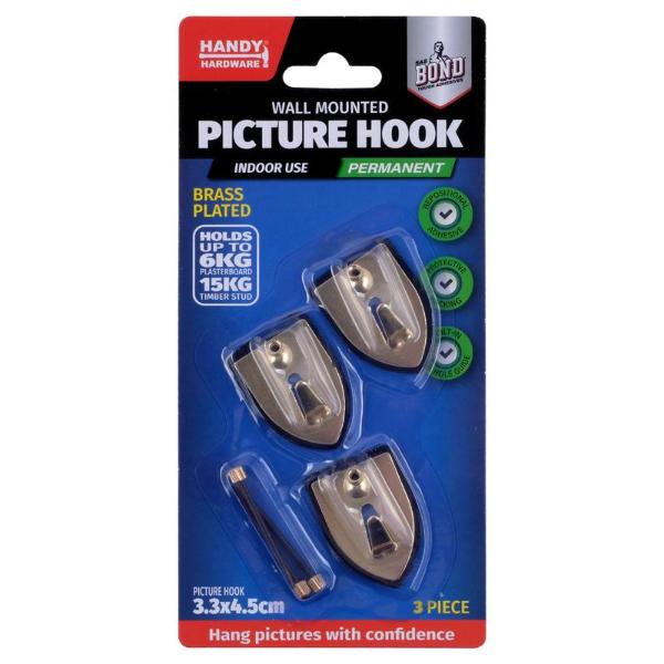 3 Pack Brass Plated Wall Mounted Hook Picture