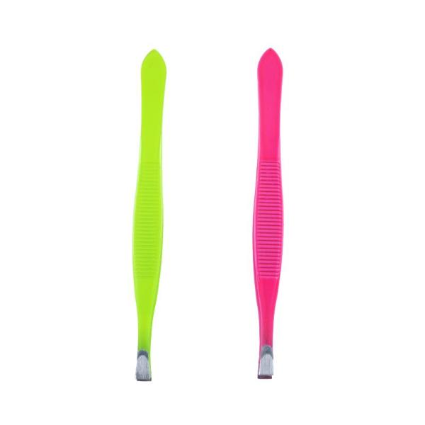 2 Pack Pink & Yellow Flat Tip Tweezers
