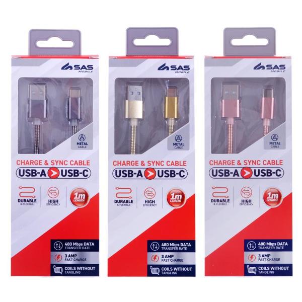 Assorted Charge & Sync USB A To Type C Metal Cable - 100cm