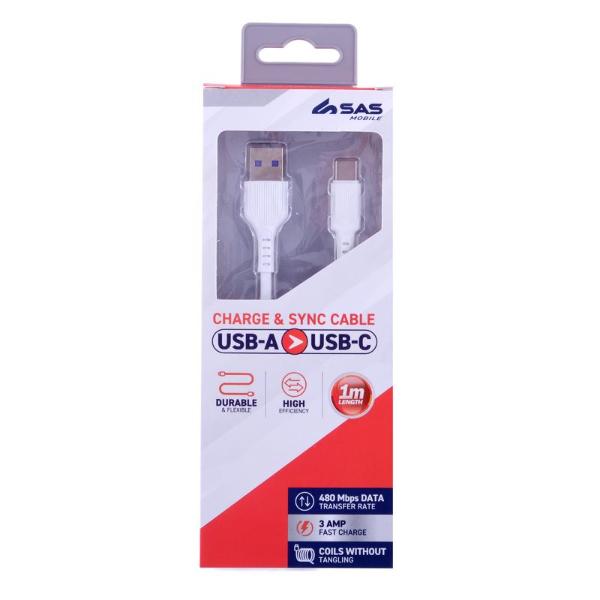 White Charge & Sync USB A To Type C PVC Cable - 100cm