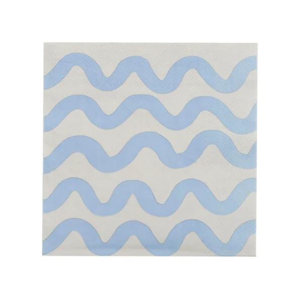 20 Pack Blue & Cream Waves 3 Ply Napkins - 33cm
