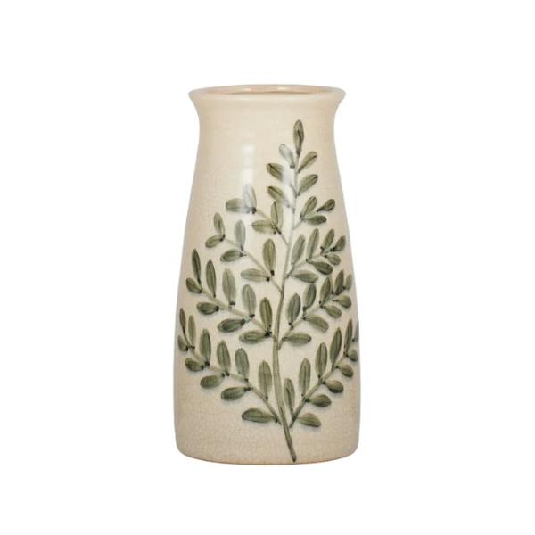Natural Green Ceramic Fougere Vase - 13.5cm x 27cm