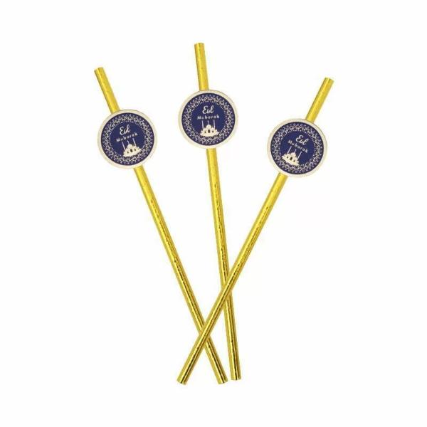 Only 3 left!8 Pack Eid Mubarak Paper Straws - 20cm x 0.6cm