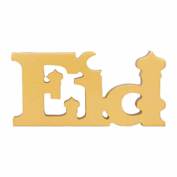 Gold Wooden Eid Table Decoration - 17.8cm x 8.8cm x 1.5cm
