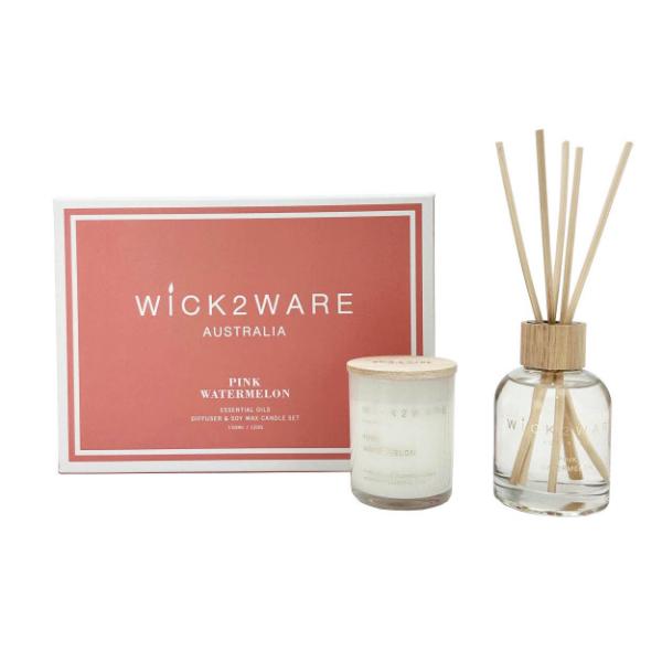 2 Pack Wick2Ware Pink Watermelon Diffuser & Soy Wax Candle
