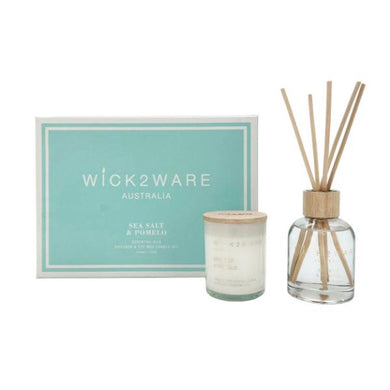 2 Pack Wick2Ware Sea Salt & Pomelo Diffuser & Soy Wax Candle