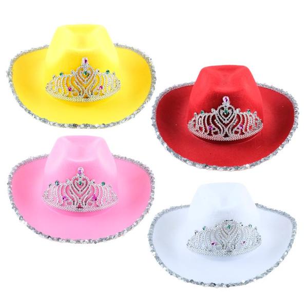 8 in stockPremium Cowgirl Flocked With Tiara Craft Hat