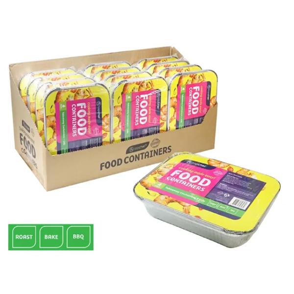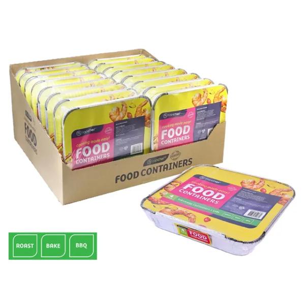 4 Pack Medium Foil Container With Lid - 25.8cm x 19.4cm x 5.7cm