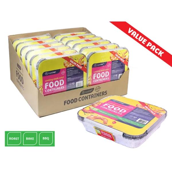 10 Pack Takeaway Foil Containers With Lids - 24.5cm x 24.5cm x 5.5cm