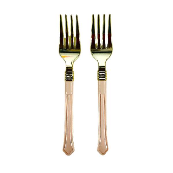 12 Pack Gold With Pink Handle Plastic Forks