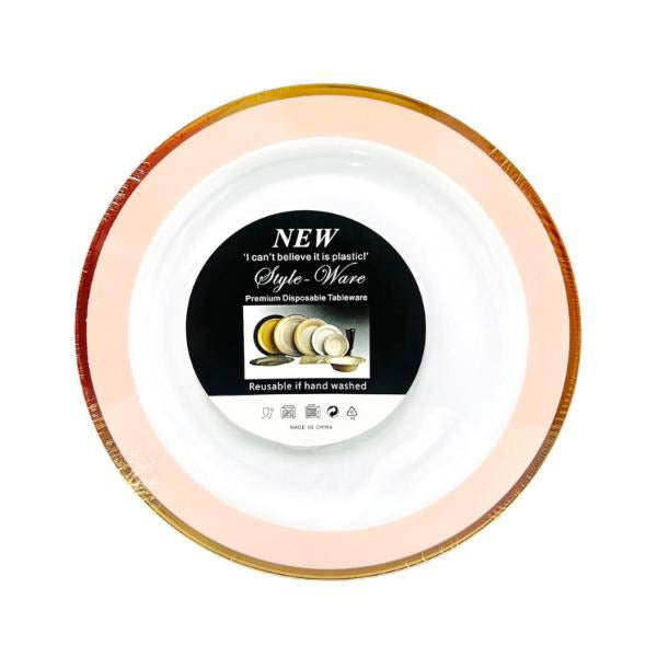 13 Pack Gold With Pink Plastic Plate - 22cm