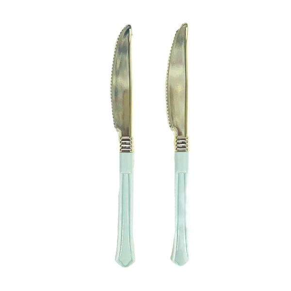 12 Pack Gold With Mint Handle Plastic Knives