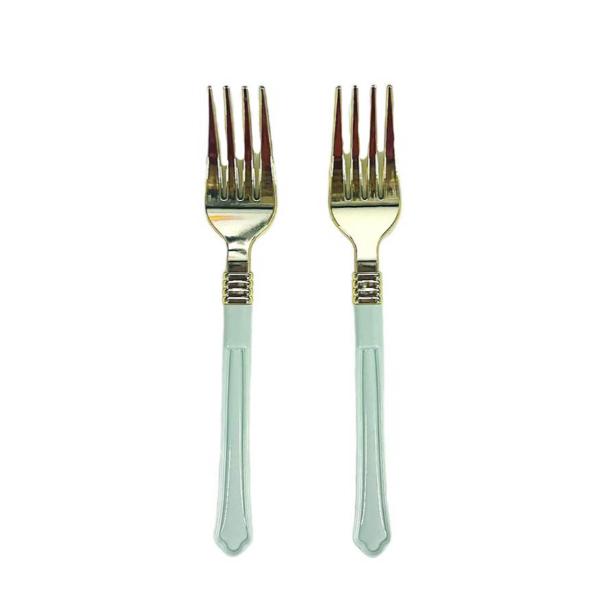 13 Pack Gold With Mint Handle Plastic Forks