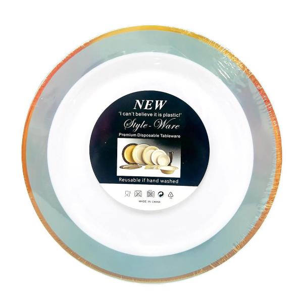 12 Pack Gold With Mint Plastic Plate - 17cm