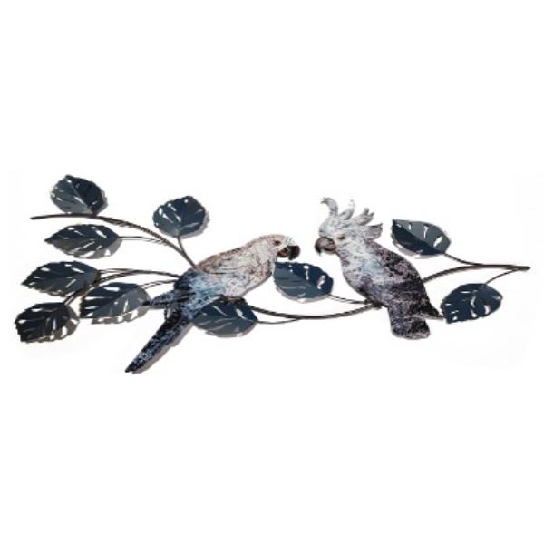 Metal Wall Art Cockatoos On Branch - 59cm x 39cm