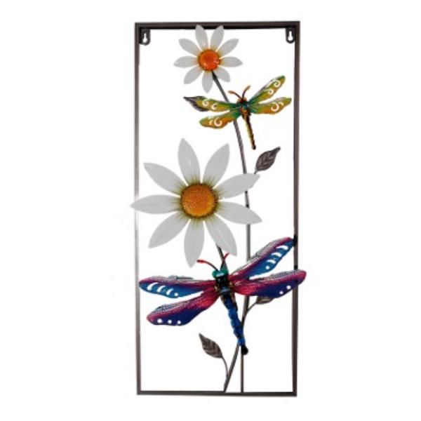 Only 3 left!Metal Wall Art Flowers & Dragonfly - 69.5cm x 29.5cm