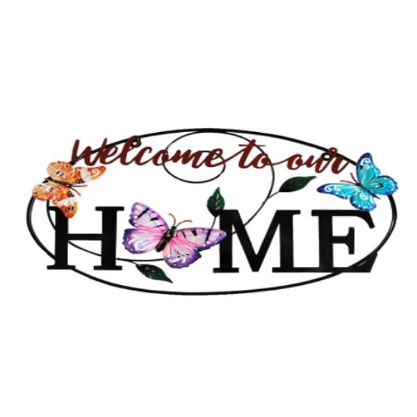 Only 2 left!Metal Wall Art Welcome Butterflies 71x32cm
