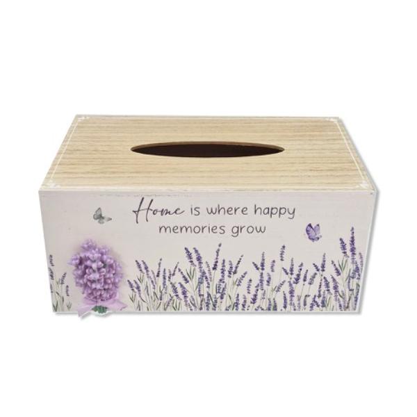 Only 4 left!Wooden Lavender Tissue Box - 25cm x 14cm x 1cm