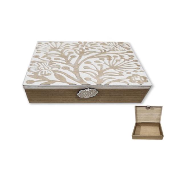 Only 2 left!Curved Pattern Wooden Box - 20cm x 20cm x 8cm