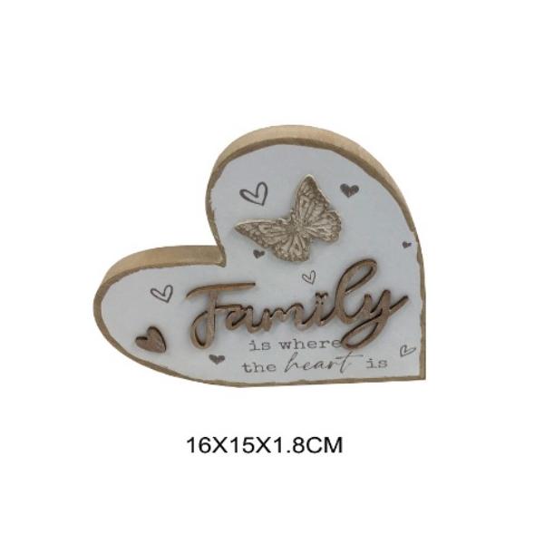 Only 3 left!Family Wooden Heart Plaque - 18cm x 18cm x 2.5cm