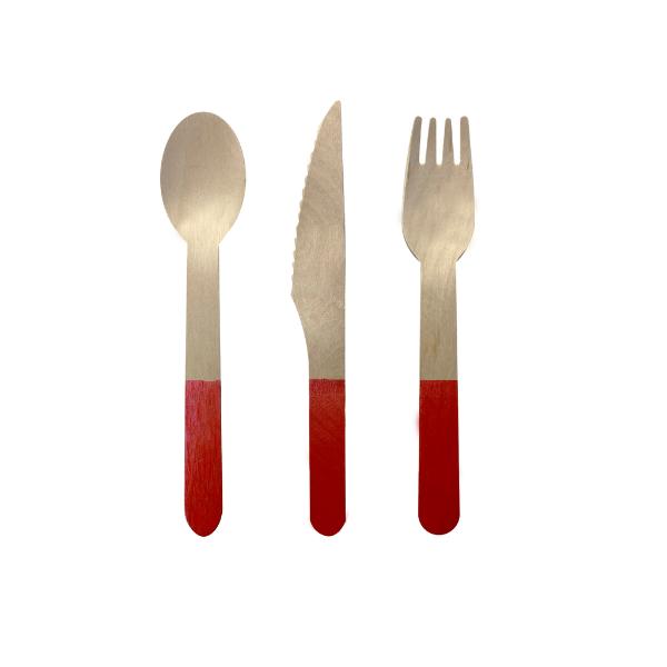 13 in stock30 Pack Cherry Red Wooden Cutlery Set - 2.5cm x 16cm