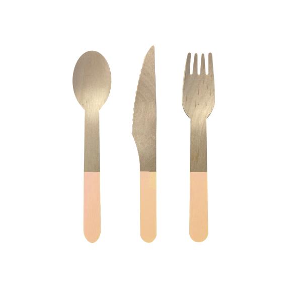 12 in stock30 Pack Peach Orange Wooden Cutlery Set - 2.5cm x 16cm