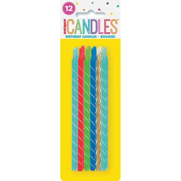 12 Pack Bright Spiral Candles - 12.7cm