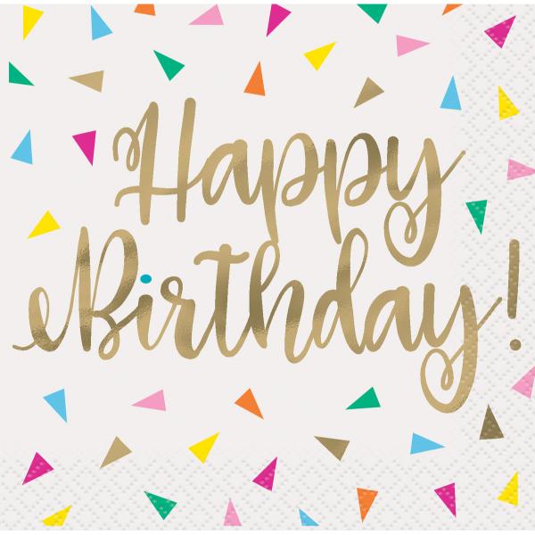 16 Pack 2 Ply Bright Happy Birthday Napkins - 33cm x 33cm