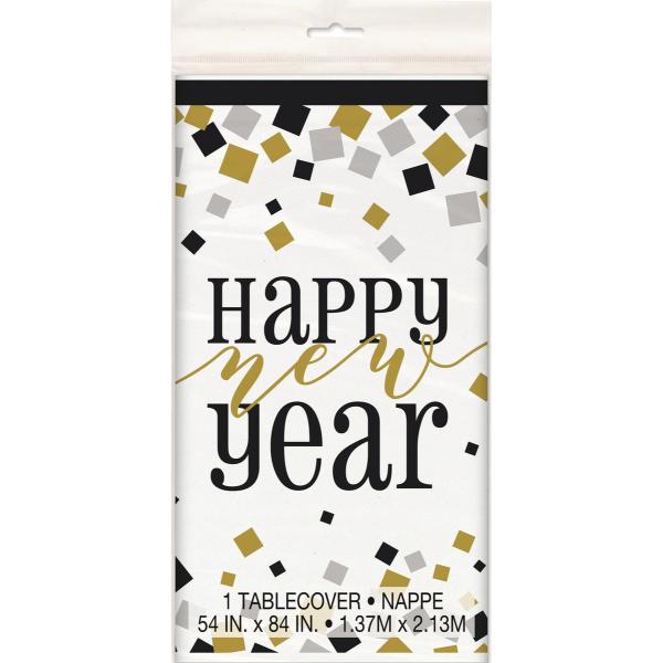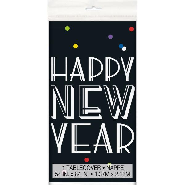 Only 1 left!Black Gold & Silver Happy New Year Table Cover - 137cm x 213cm