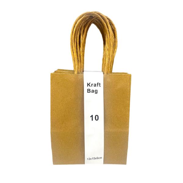 10 Pack Recycle Kraft Bag - 12cm x 15cm x 6cm