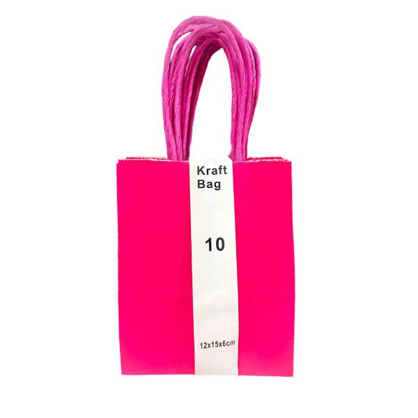 10 Pack Hot Pink Kraft Bag - 12cm x 15cm x 6cm
