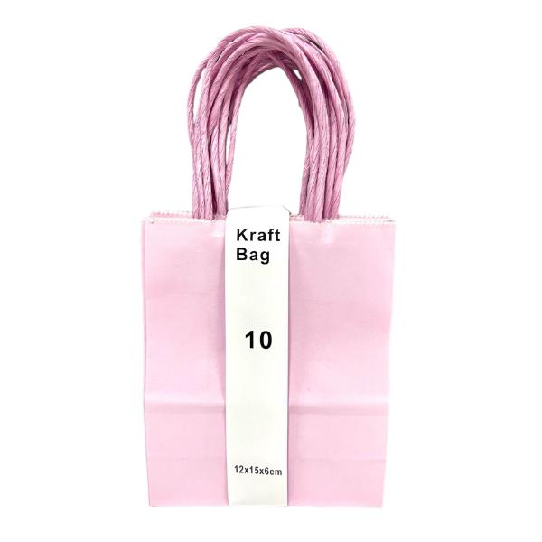 10 Pack Light Pink Kraft Bag - 12cm x 15cm x 6cm