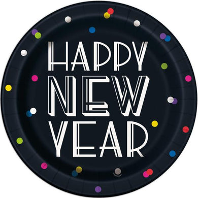 8 Pack Neon Dots Best New Year Paper Plate - 23cm