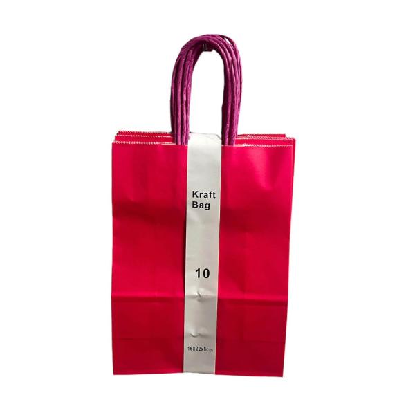 10 Pack Hot Pink Kraft Bag - 16cm x 22cm x 8cm