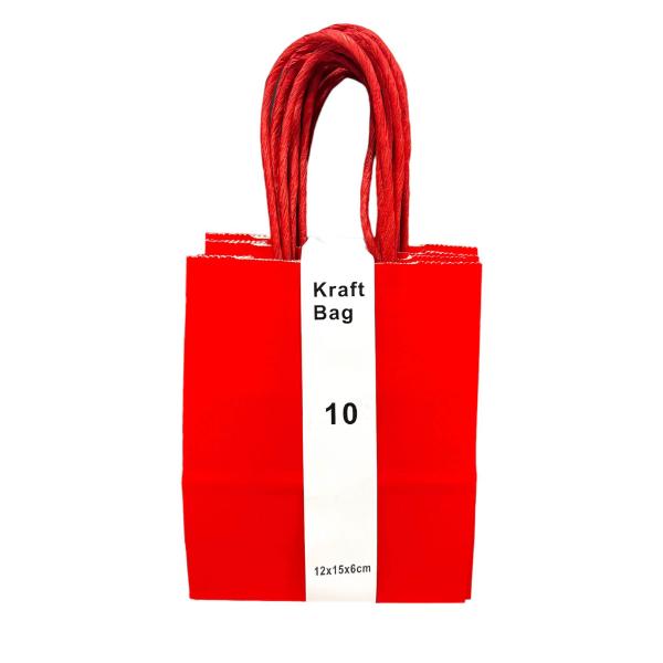 10 Pack Red Kraft Bag - 12cm x 15cm x 6cm