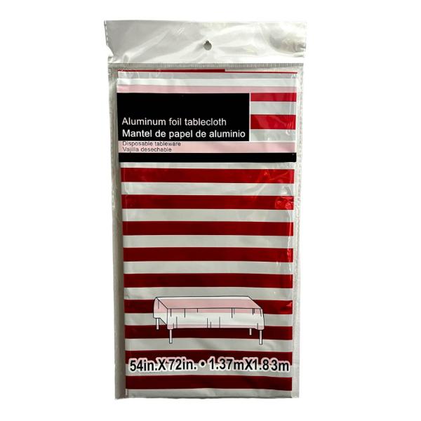 Red Stripe Foil Table Cloth - 137cm x 183cm