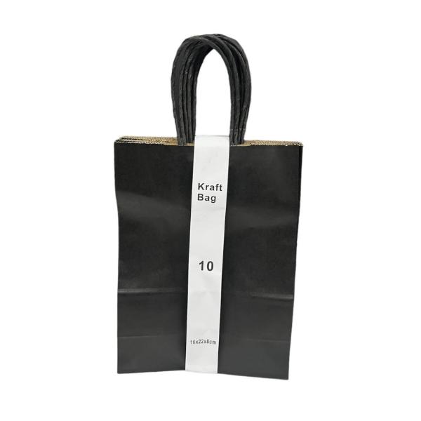 10 Pack Black Kraft Bag - 16cm x 22cm x 8cm