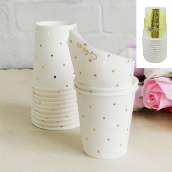 Only 3 left!12 Pack Metallic Gold Dotty Paper Cup - 266ml